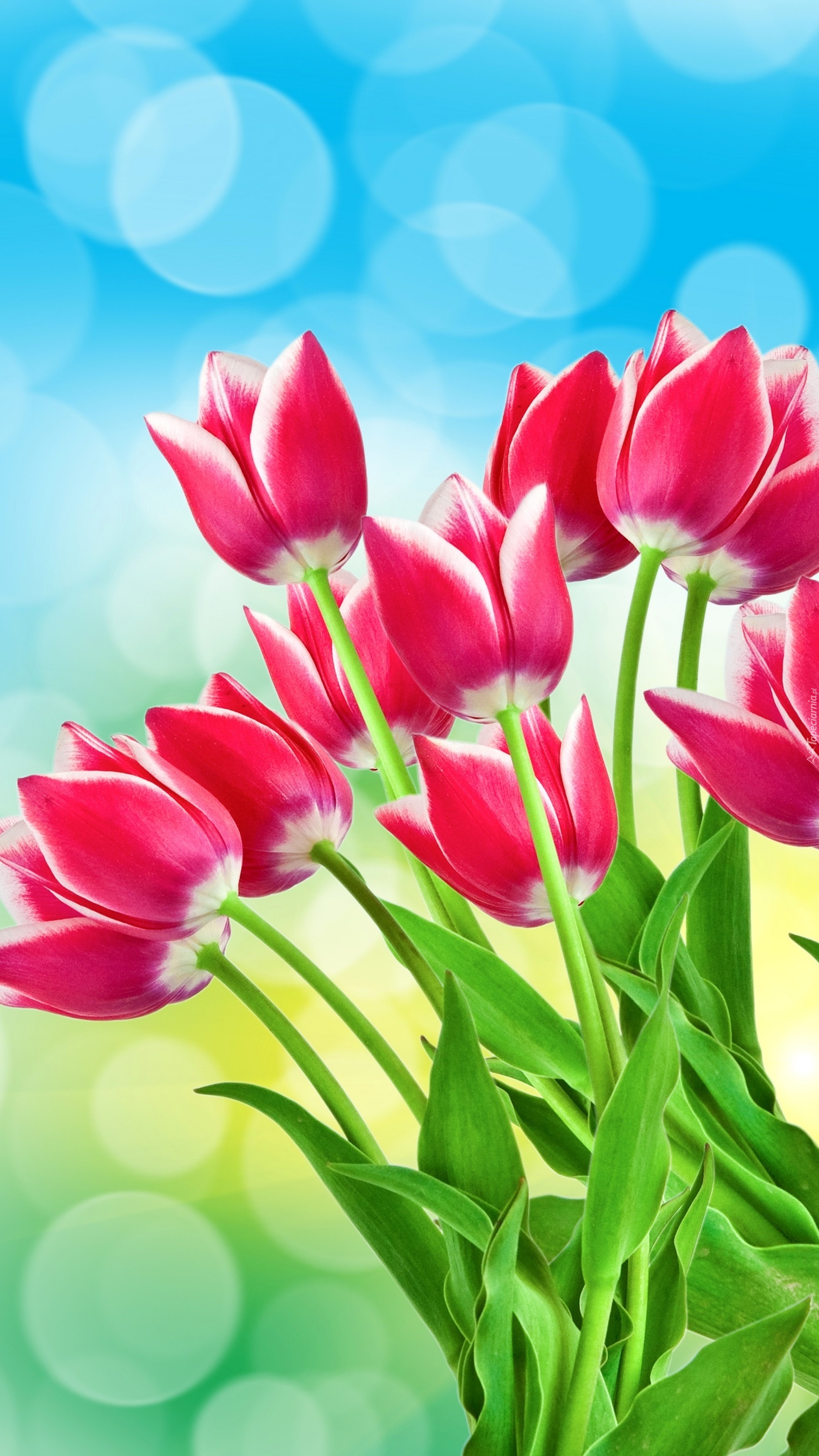 Edytor tapety: Biało-różowe tulipany w bukiecie