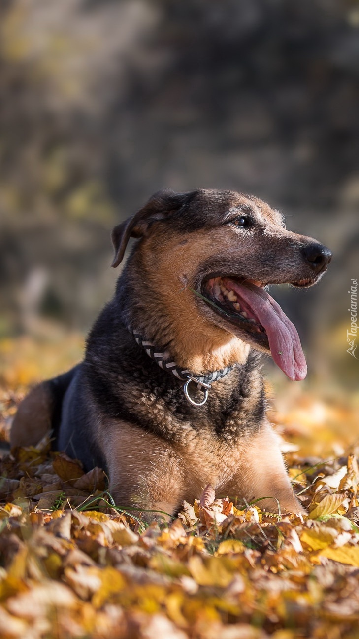 Edytor tapety: Leżący pies z jęzorem na wierzchu