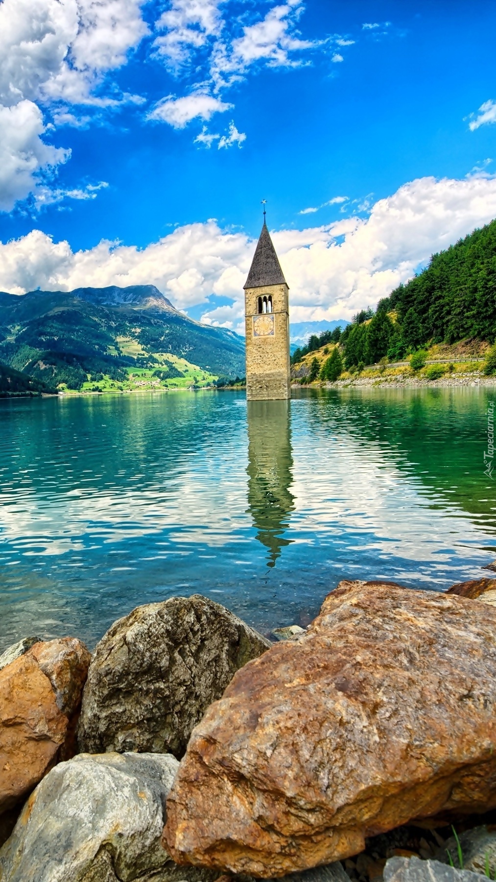 Edytor tapety: Dzwonnica w jeziorze Reschensee