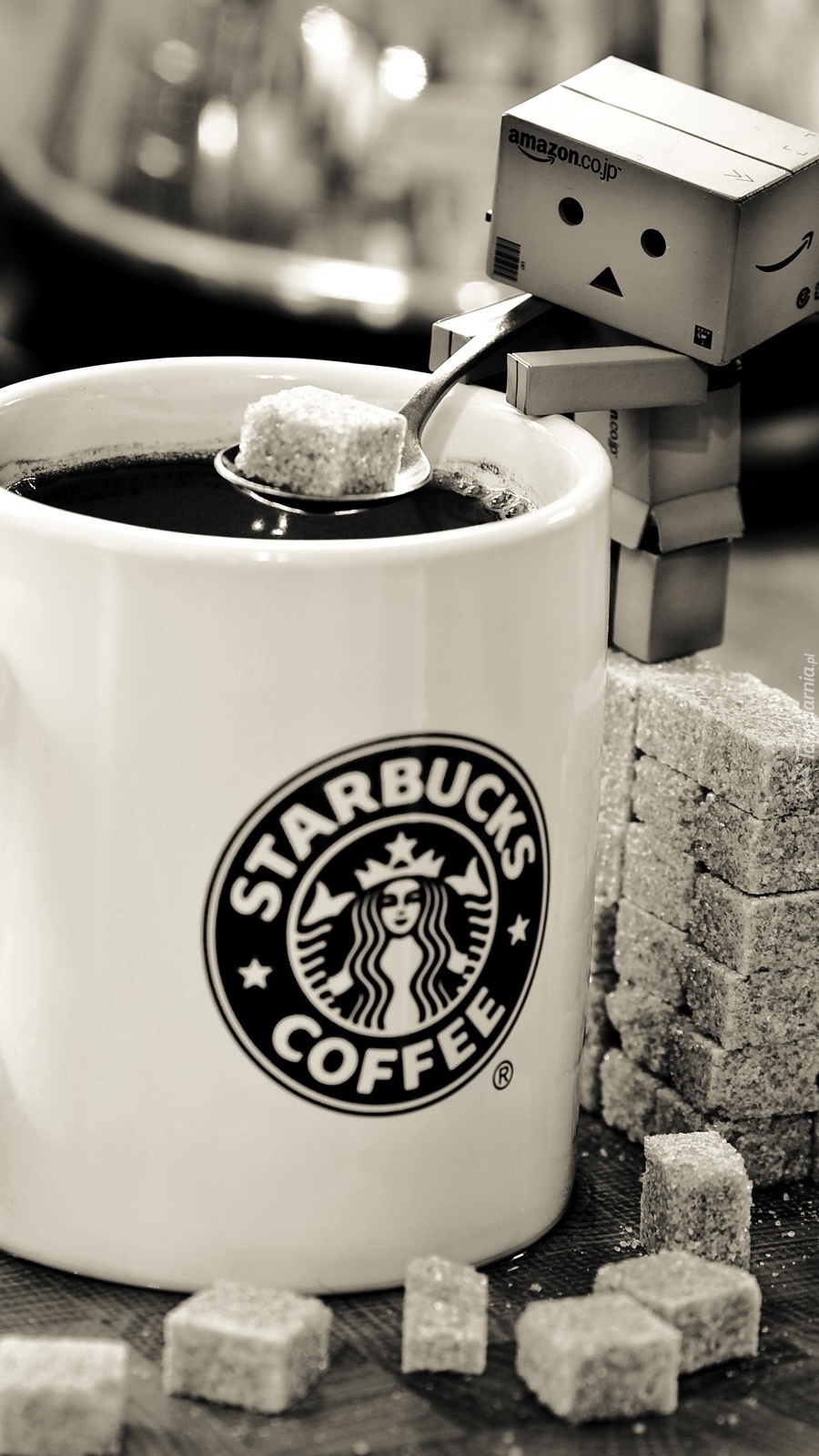 Edytor tapety: Danbo słodzący kawę cukrem w kostkach