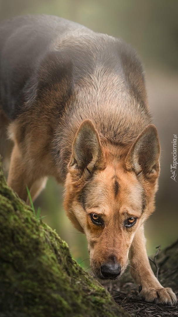 Edytor tapety: Owczarek niemiecki na drzewie
