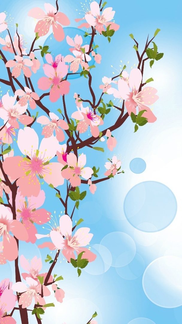 Edytor tapety: Gałązka różowymi kwiatami obsypana