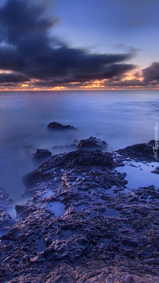 Edytor tapety: Chmurny wschód słońca nad brzegiem morza