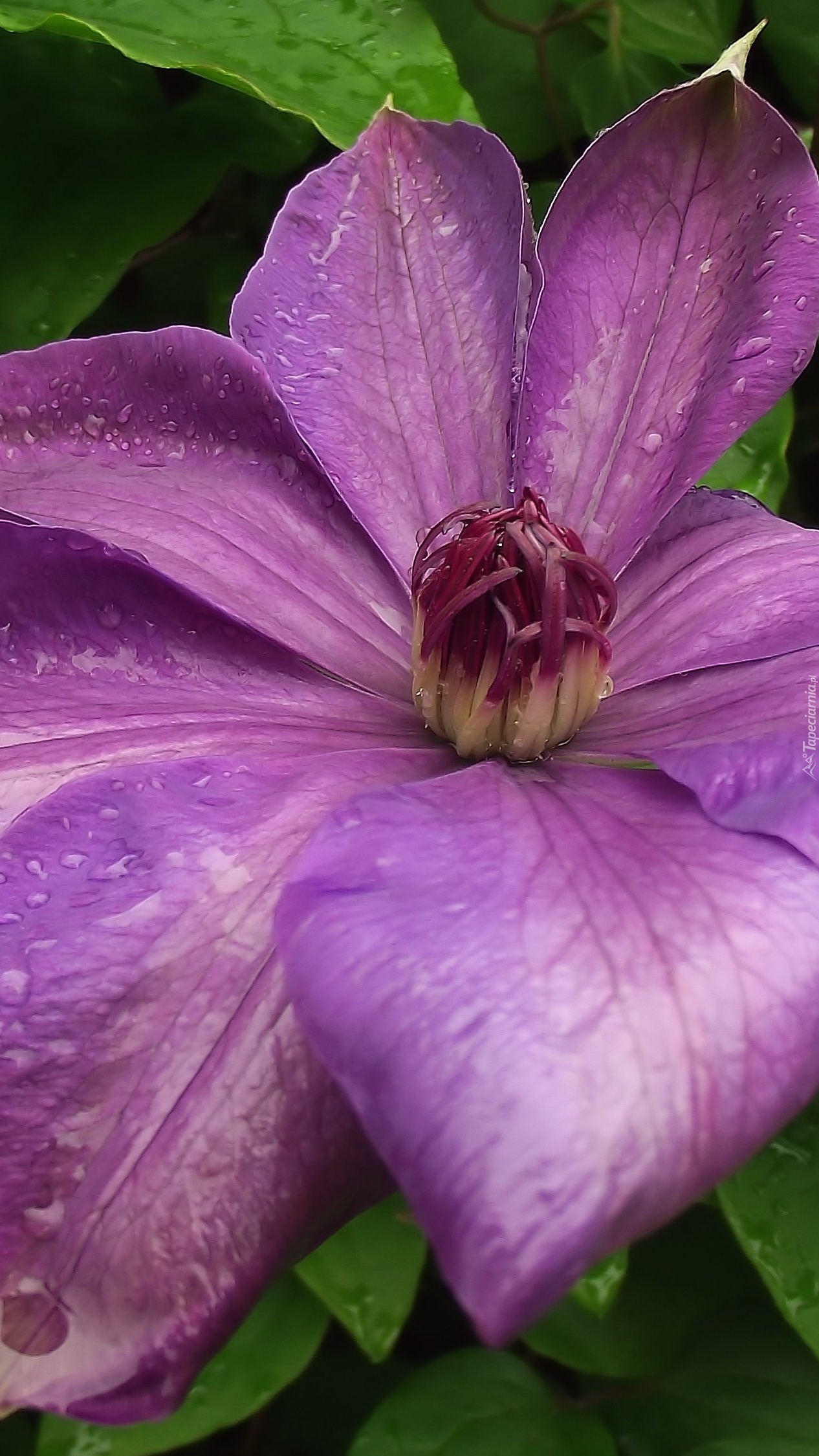 Edytor tapety: Fioletowy clematis po deszczu