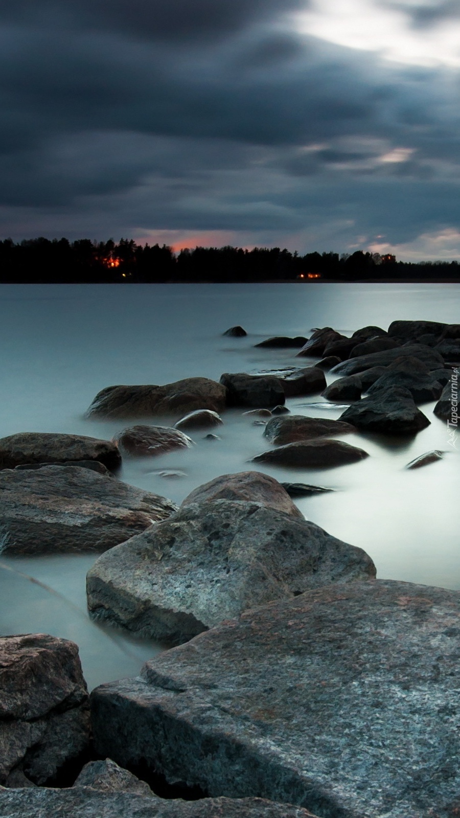Edytor tapety: Jezioro z kamieniami na brzegu
