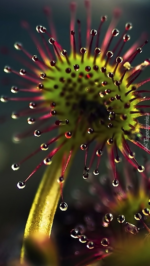 Edytor tapety: Kwiat drapieżnik w kroplach rosy