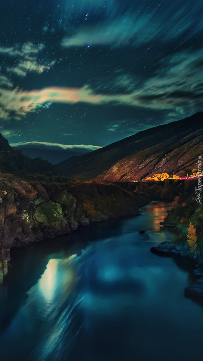 Edytor tapety: Gwiaździsta noc nad rzeczką