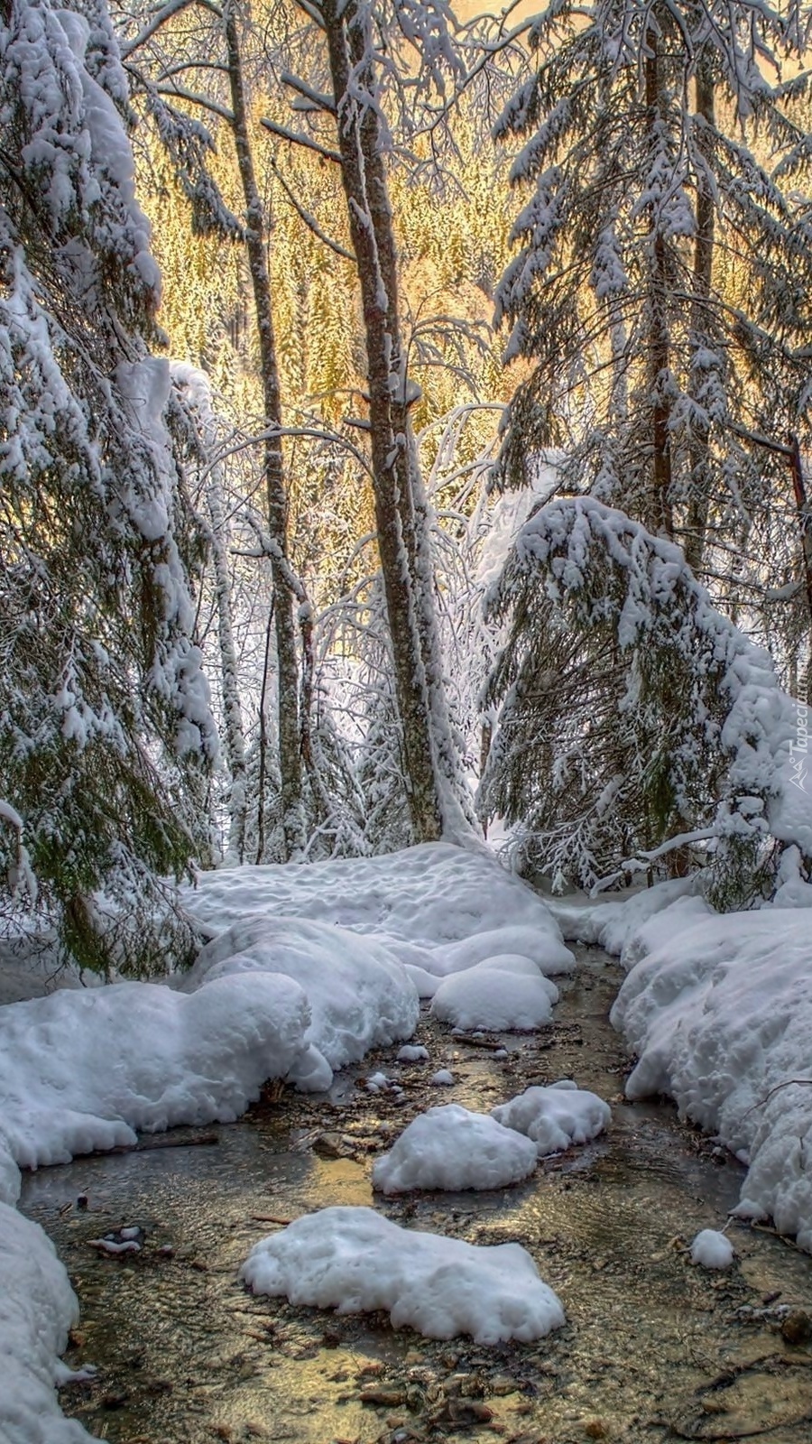 Edytor tapety: Zimowy las i rzeka