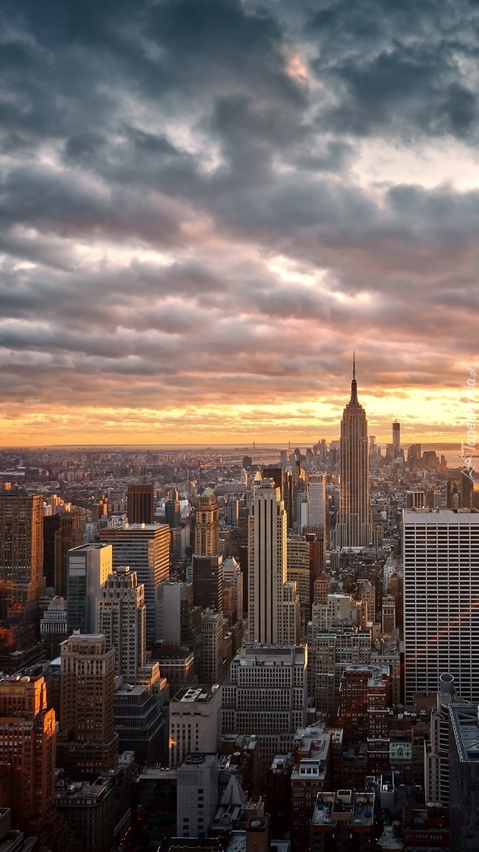 Edytor tapety: Nowojorskie drapacze chmur o zachodzie słońca