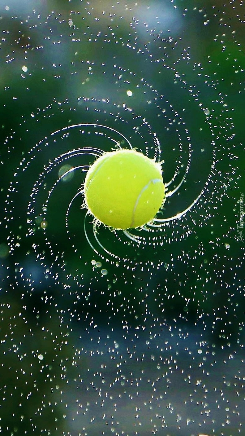 Edytor tapety: Piłeczka tenisowa w spirali kropel wody