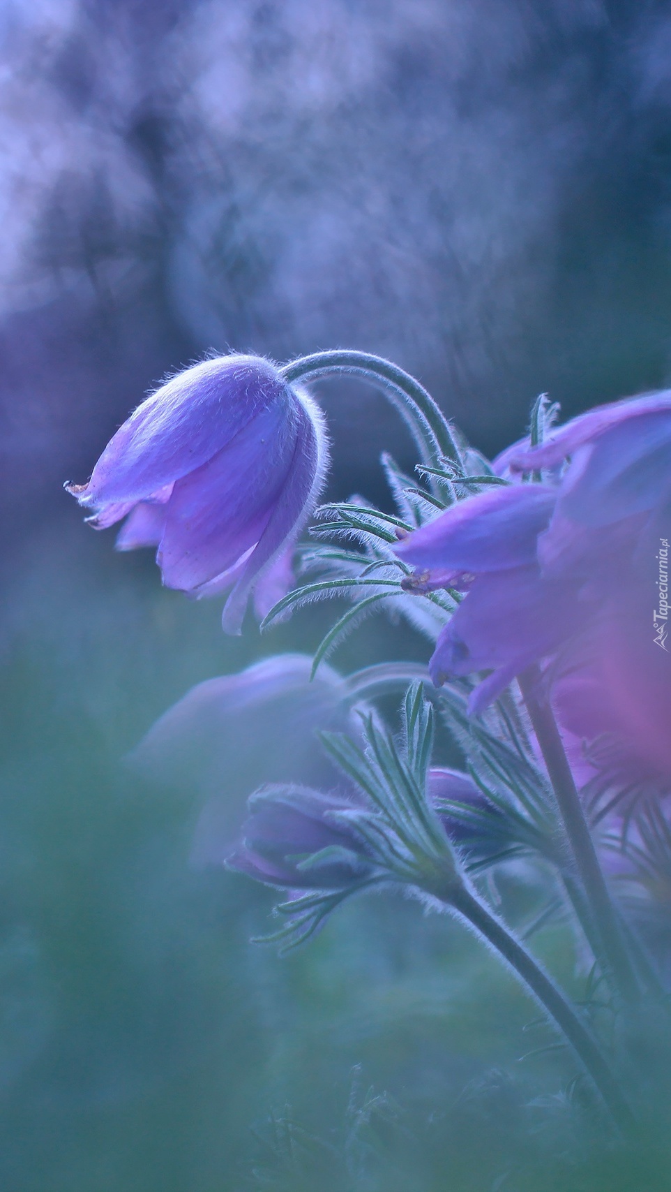 Edytor tapety: Kwiaty sasanki w rozmyciu