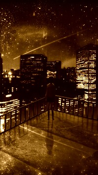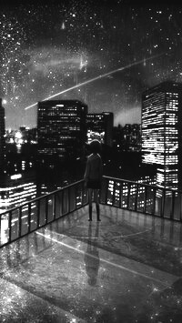 Edytor tapety: Dziewczyna na dachu licząca nocą gwiazdy