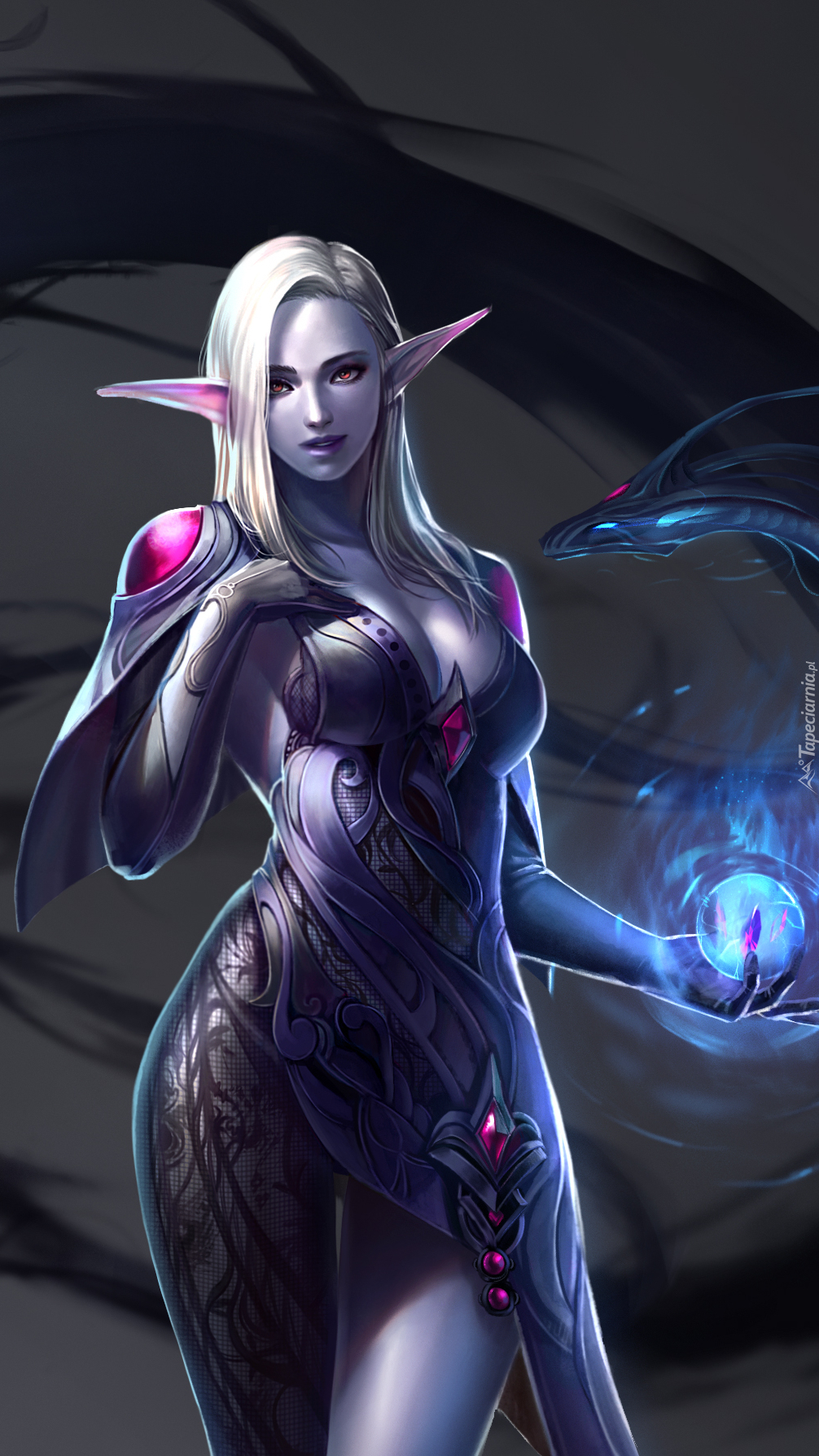 Edytor tapety: Baśniowa kobieta elf ze smokiem
