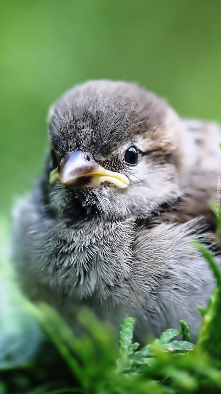 Edytor tapety: Bezbronny mały ptaszek o bystrych oczkach