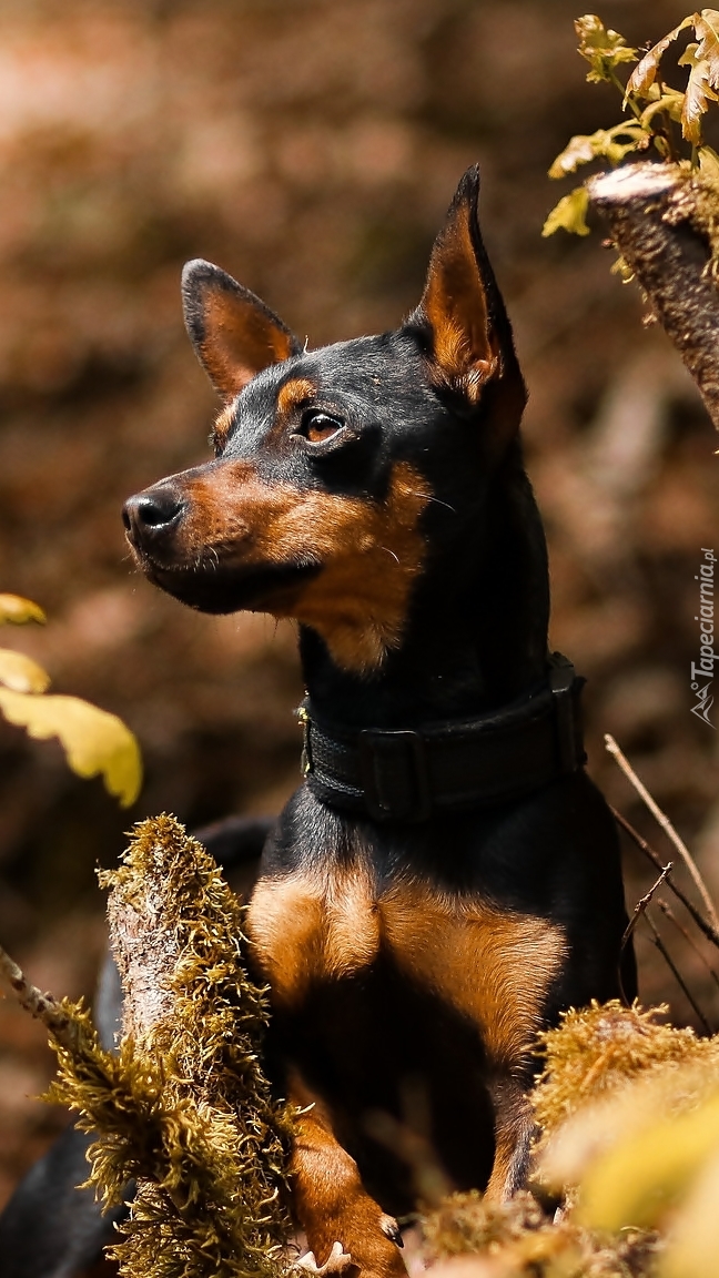 Edytor tapety: Pinczer miniaturowy w liściach