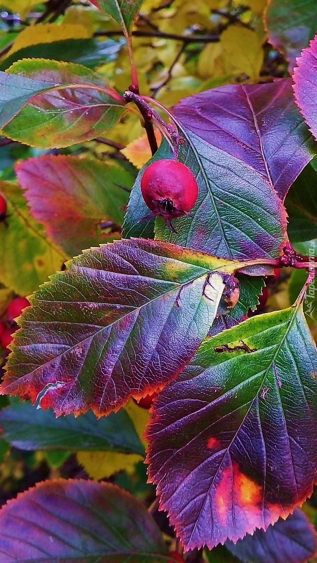 Edytor tapety: Owoc głogu na tle kolorowych liści