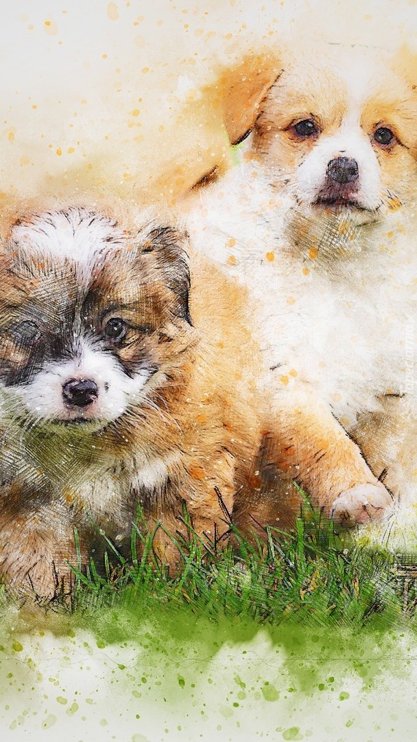Edytor tapety: Pieski na trawie w paintography