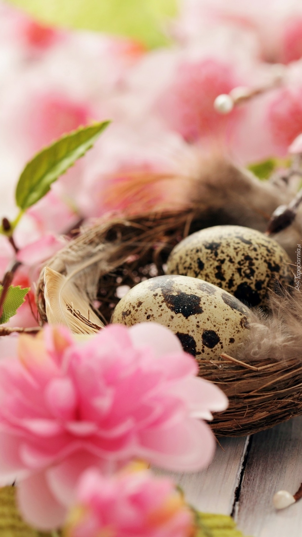 Edytor tapety: Wielkanocne jajka w malutkim gniazdku