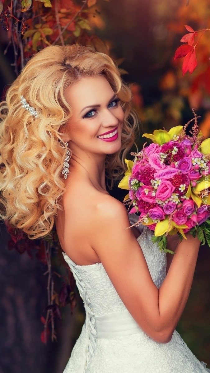 Edytor tapety: Szczęśliwa panna młoda z bukietem