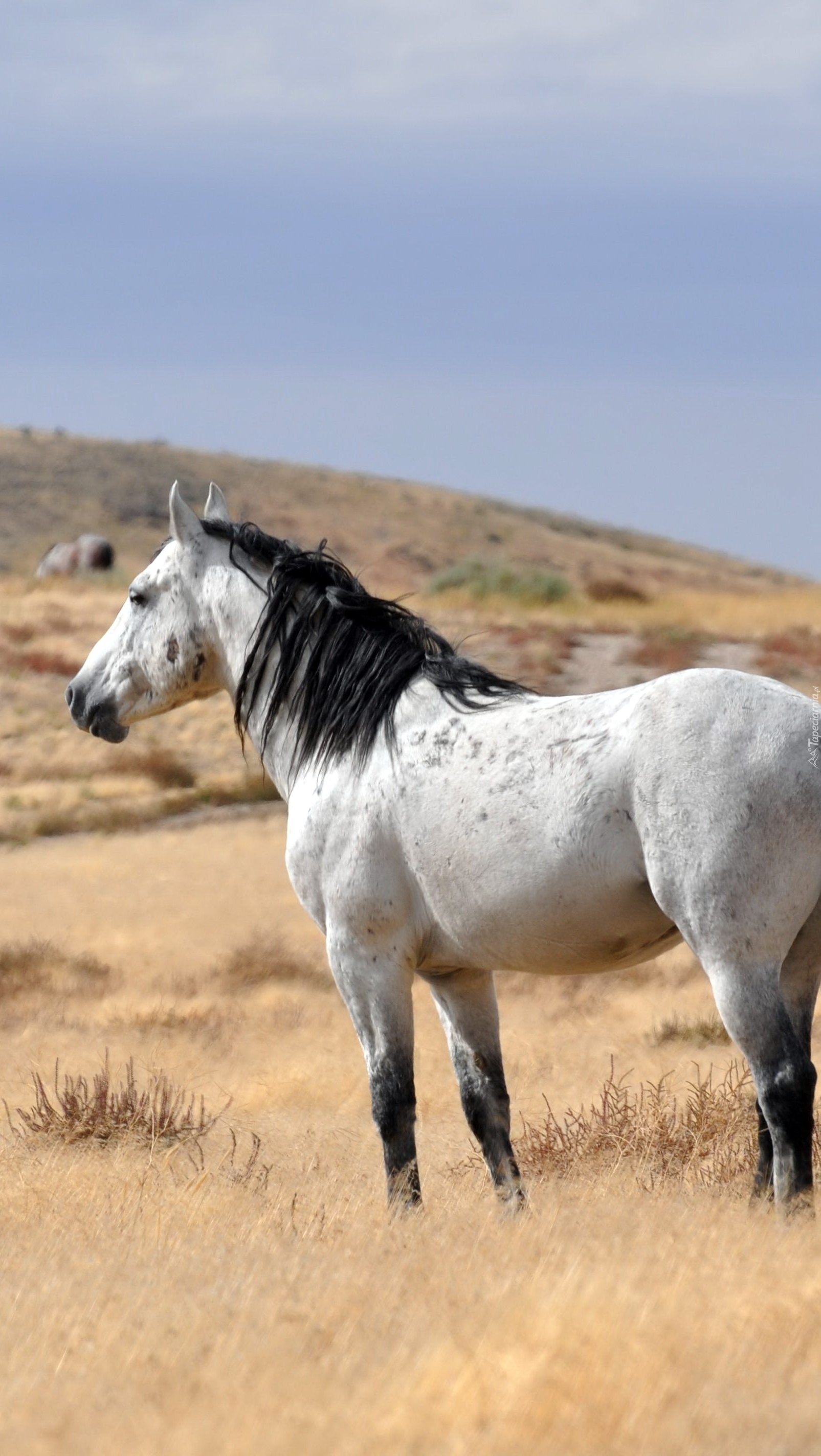 Edytor tapety: Koń na łące o suchej trawie