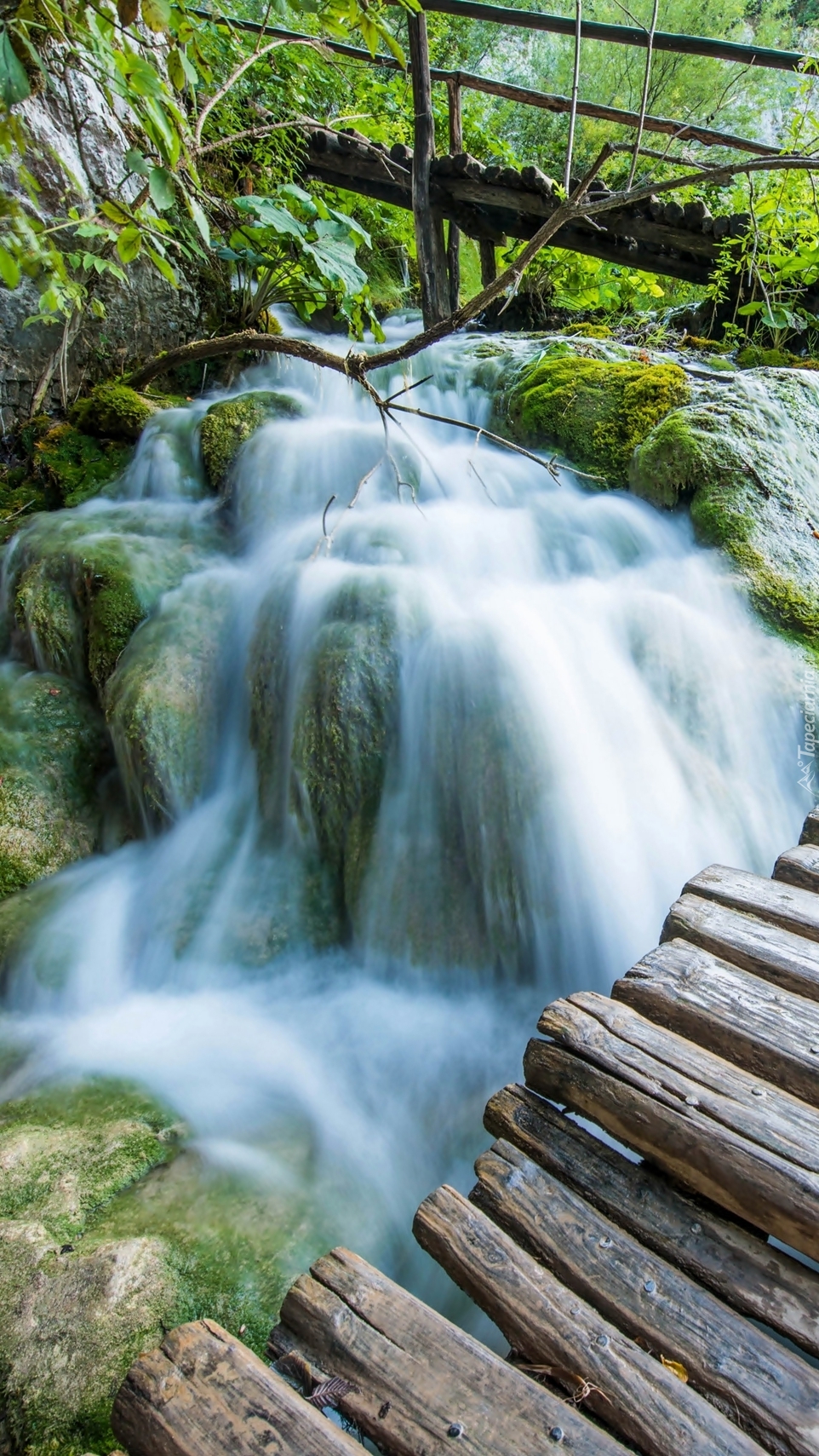 Edytor tapety: Pomost nad skalnym wodospadem