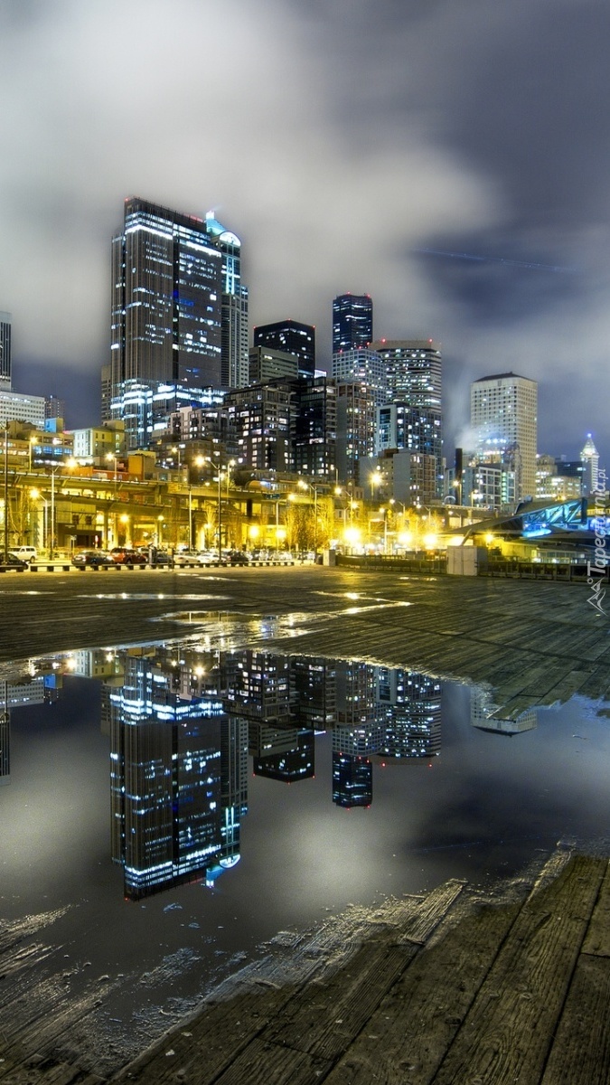 Edytor tapety: Wieżowce odbijające się w kałuży