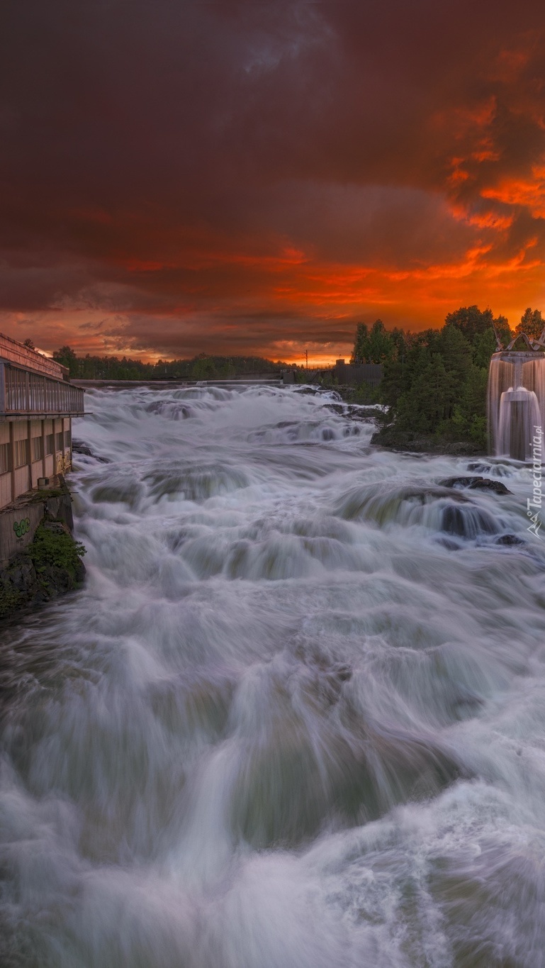 Edytor tapety: Zachodzące słońce żegna się z wodospadem