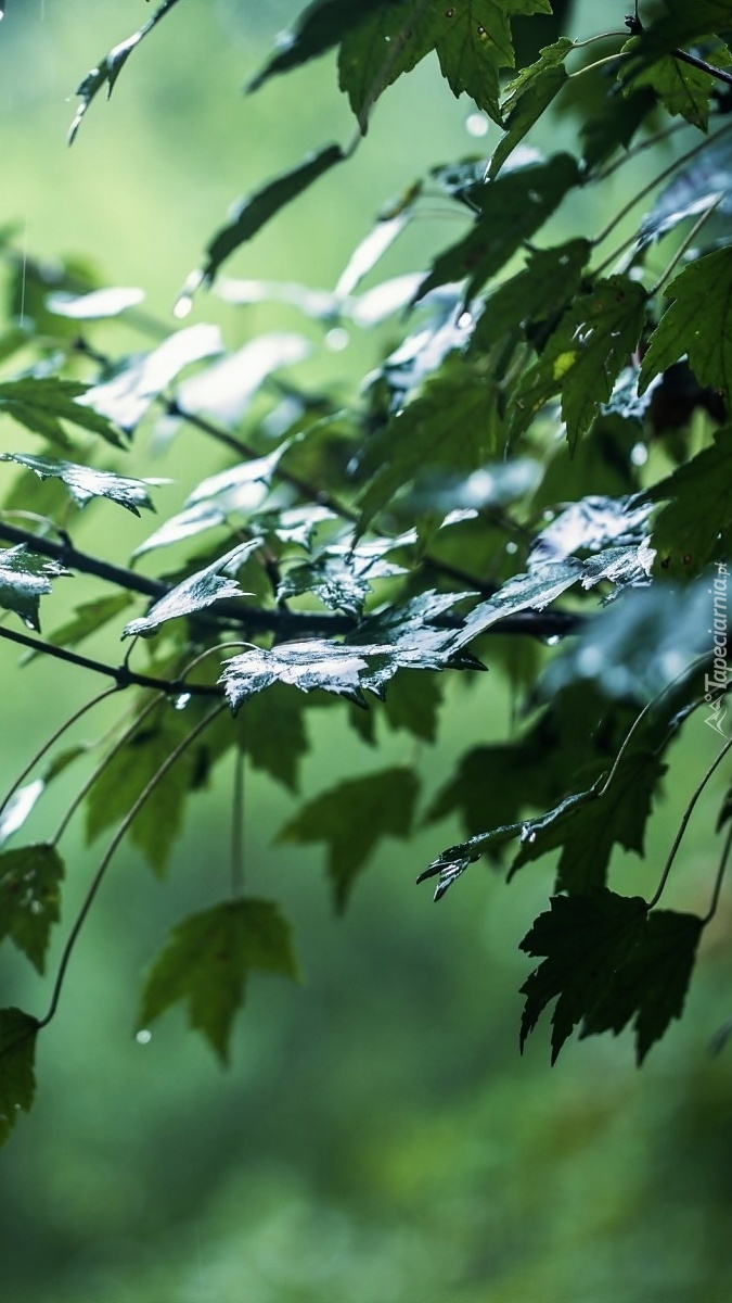Edytor tapety: Gałęzie i liście zmoczone deszczem