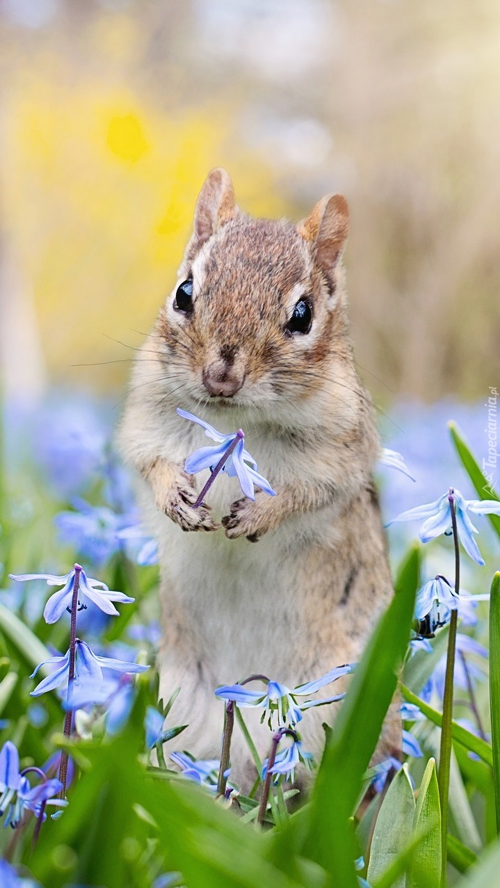 Edytor tapety: Wiewiórka chipmunk z kwiatkiem