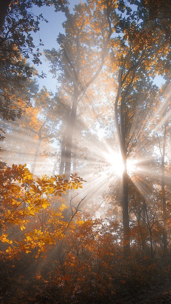 Edytor tapety: Drzewa w promieniach słońca