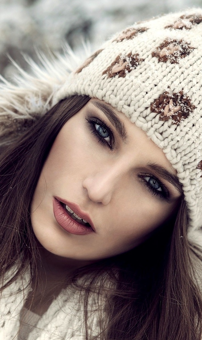 Edytor tapety: Szatynka w czapce z pięknym makijażem