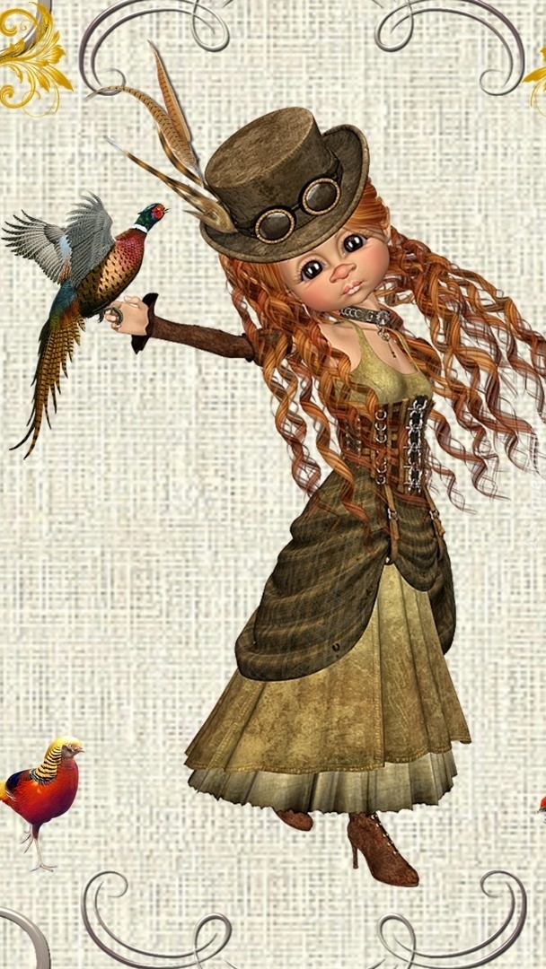 Edytor tapety: Laleczka z bażantem w grafice