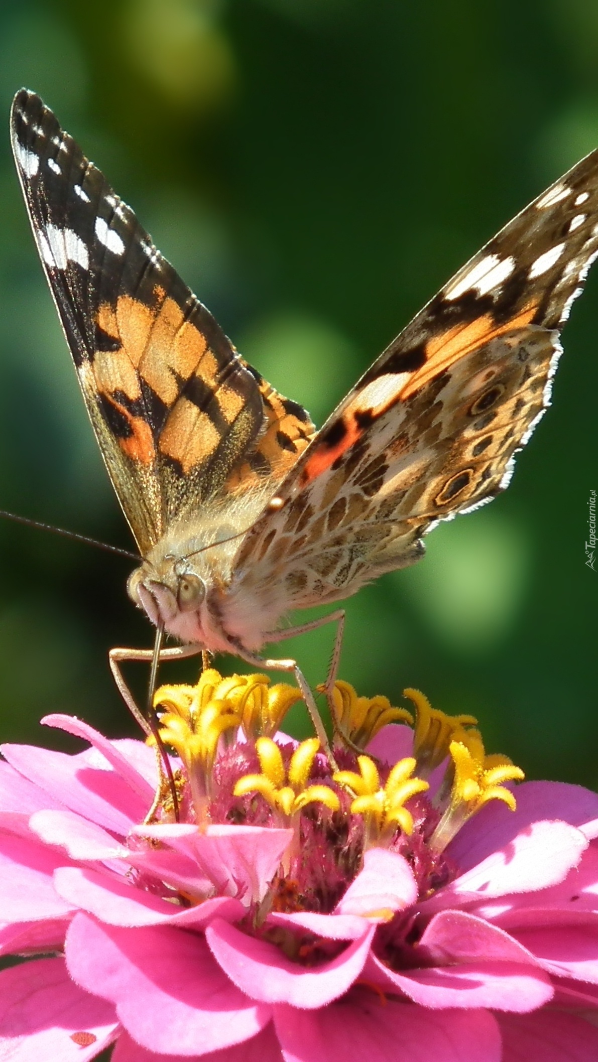 Edytor tapety: Motyl na kwiatku cynii