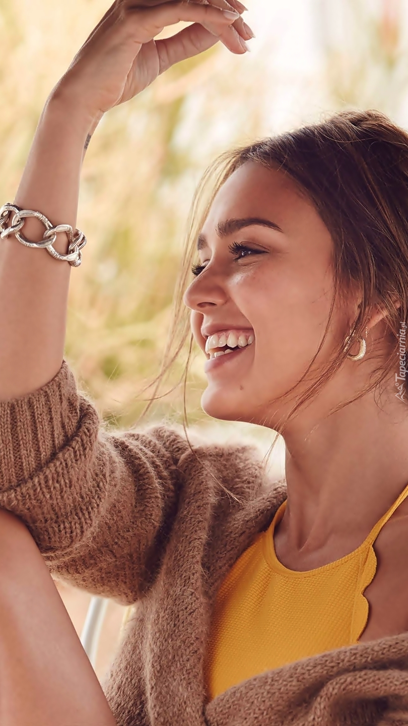 Edytor tapety: Srebrna bransoletka na ręce uśmiechniętej dziewczyny