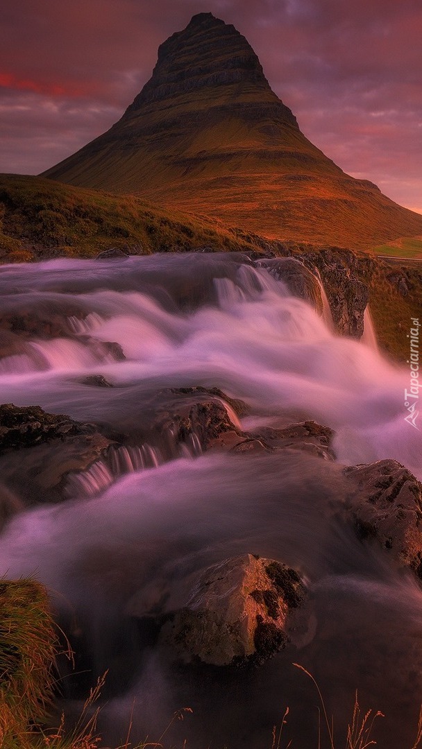 Edytor tapety: Góra Kirkjufell i rwący wodospad