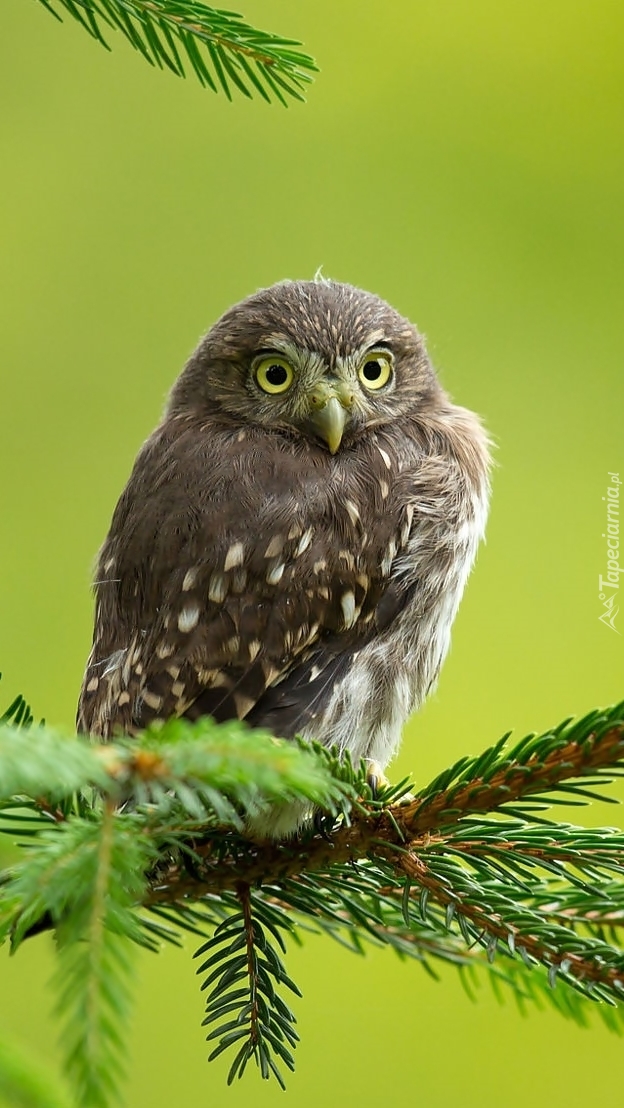 Edytor tapety: Sowa na gałęzi jodły