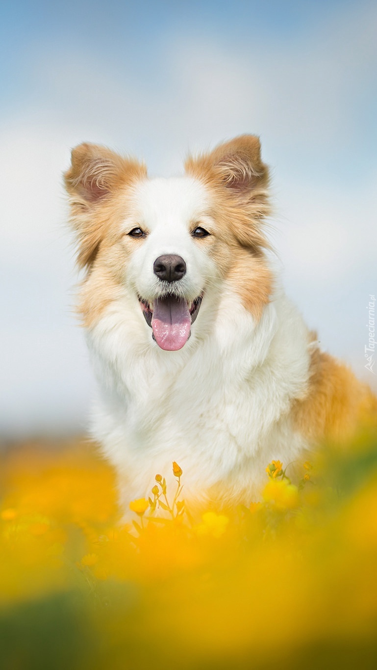 Edytor tapety: Zadowolony pies border collie na łące