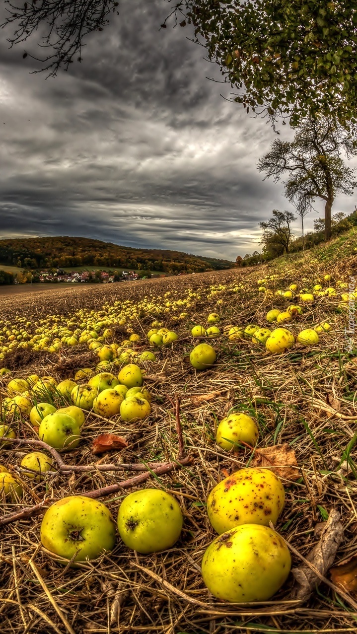 Edytor tapety: Spady jabłkowe na polu jesienią