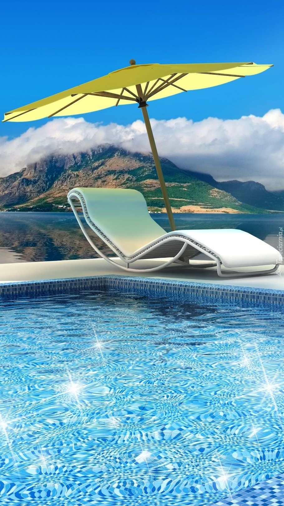 Edytor tapety: Leżak pod parasolem przy basenie