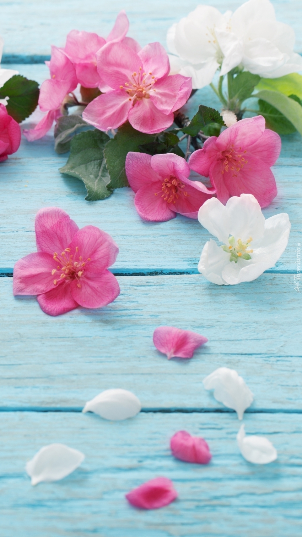 Edytor tapety: Kwiaty rozrzucone na deskach