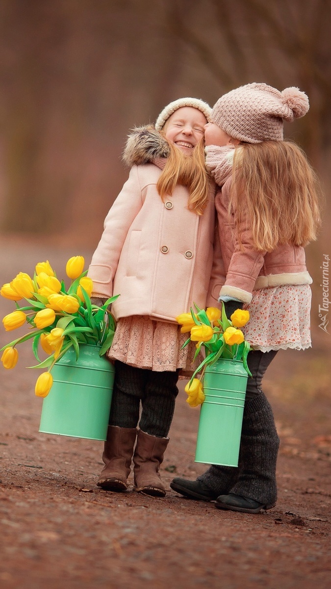 Edytor tapety: Dziewczynki z żółtymi tulipanami