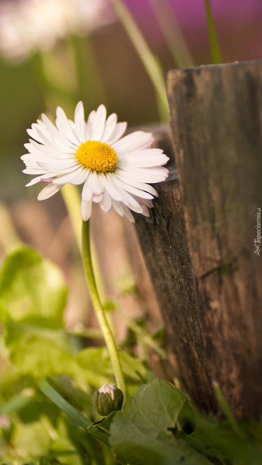 Edytor tapety: Stokrotka rosnąca przy pniu