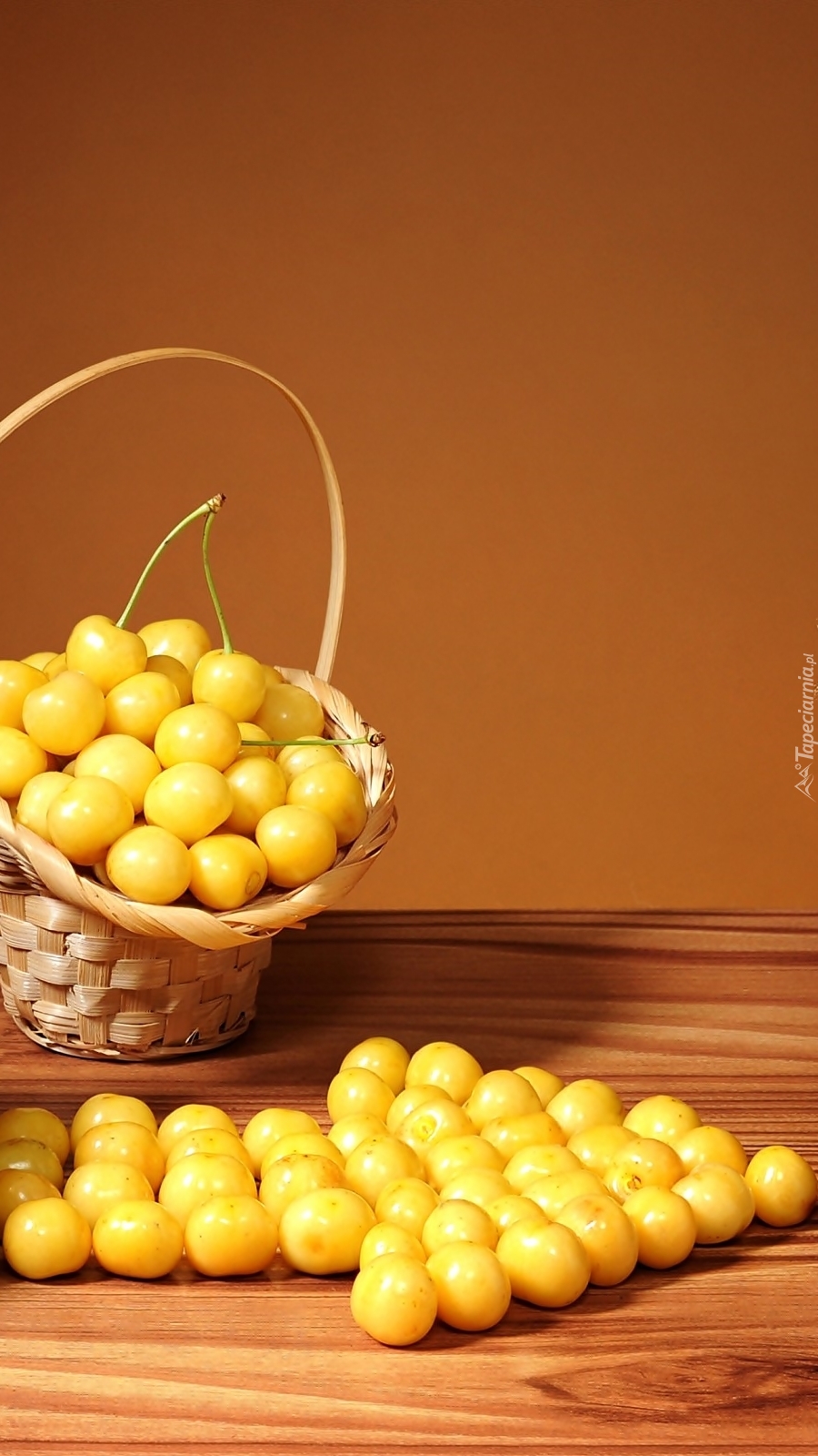 Edytor tapety: Koszyk żółtych czereśni