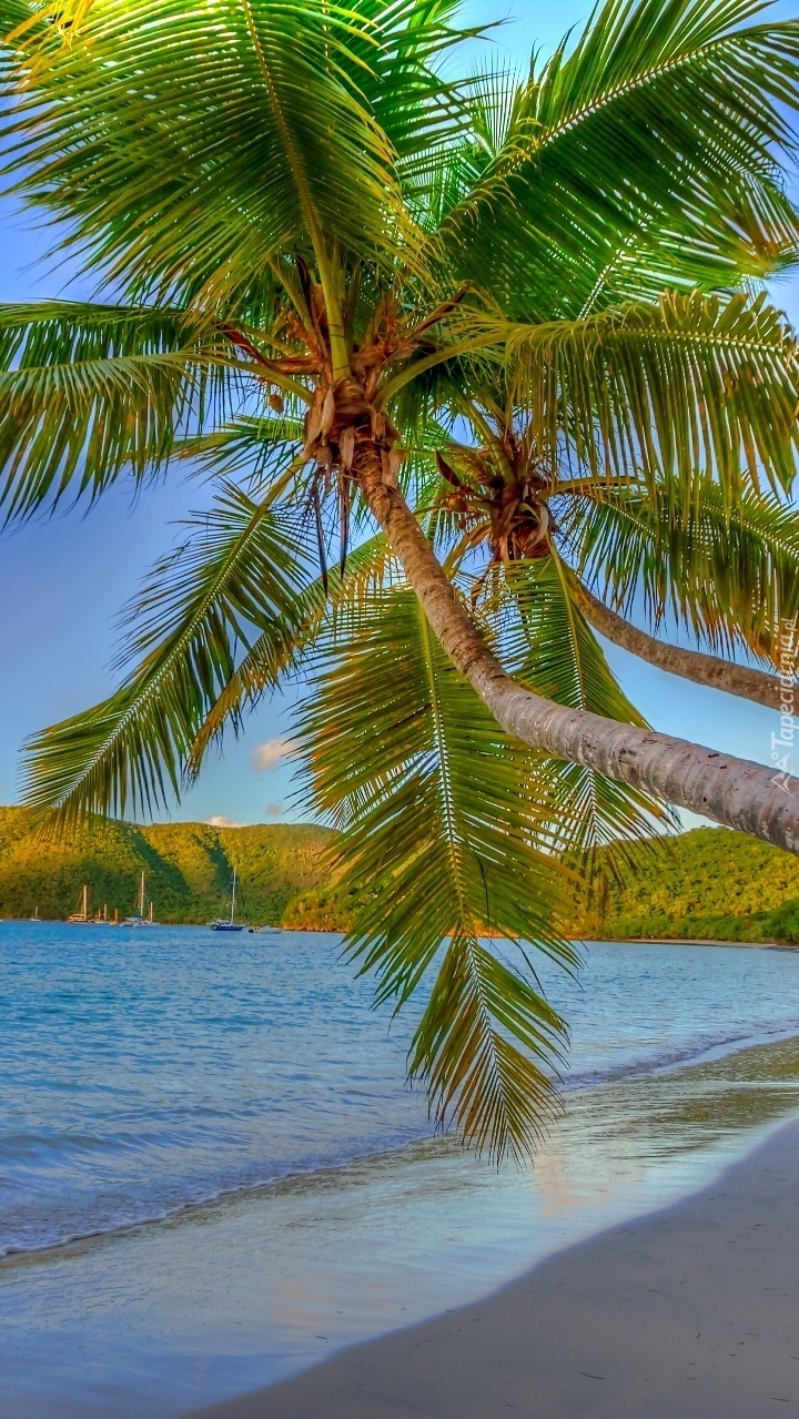 Edytor tapety: Palmy pochylone nad morzem przy plaży