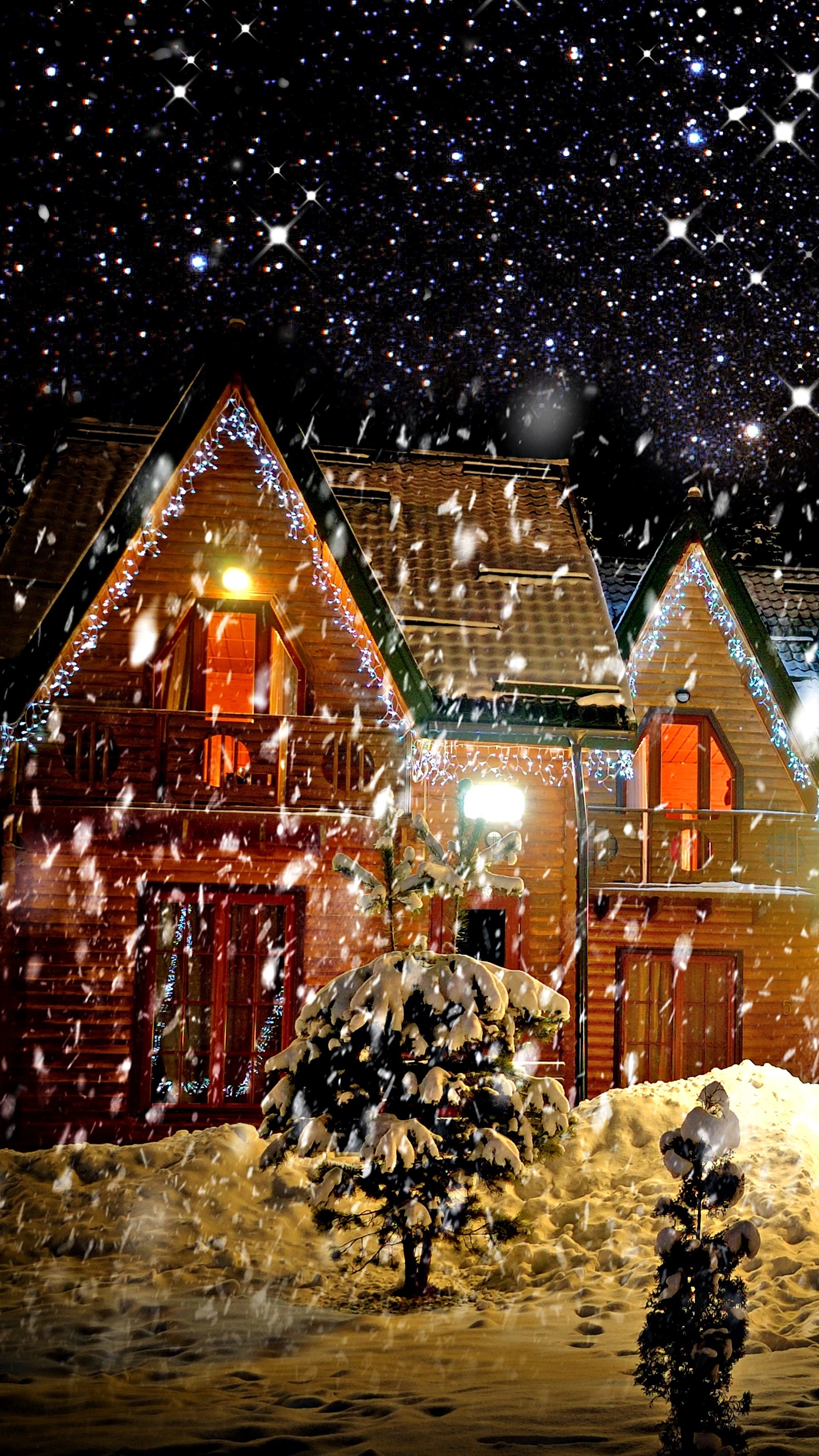 Edytor tapety: Oświetlony dom zimą