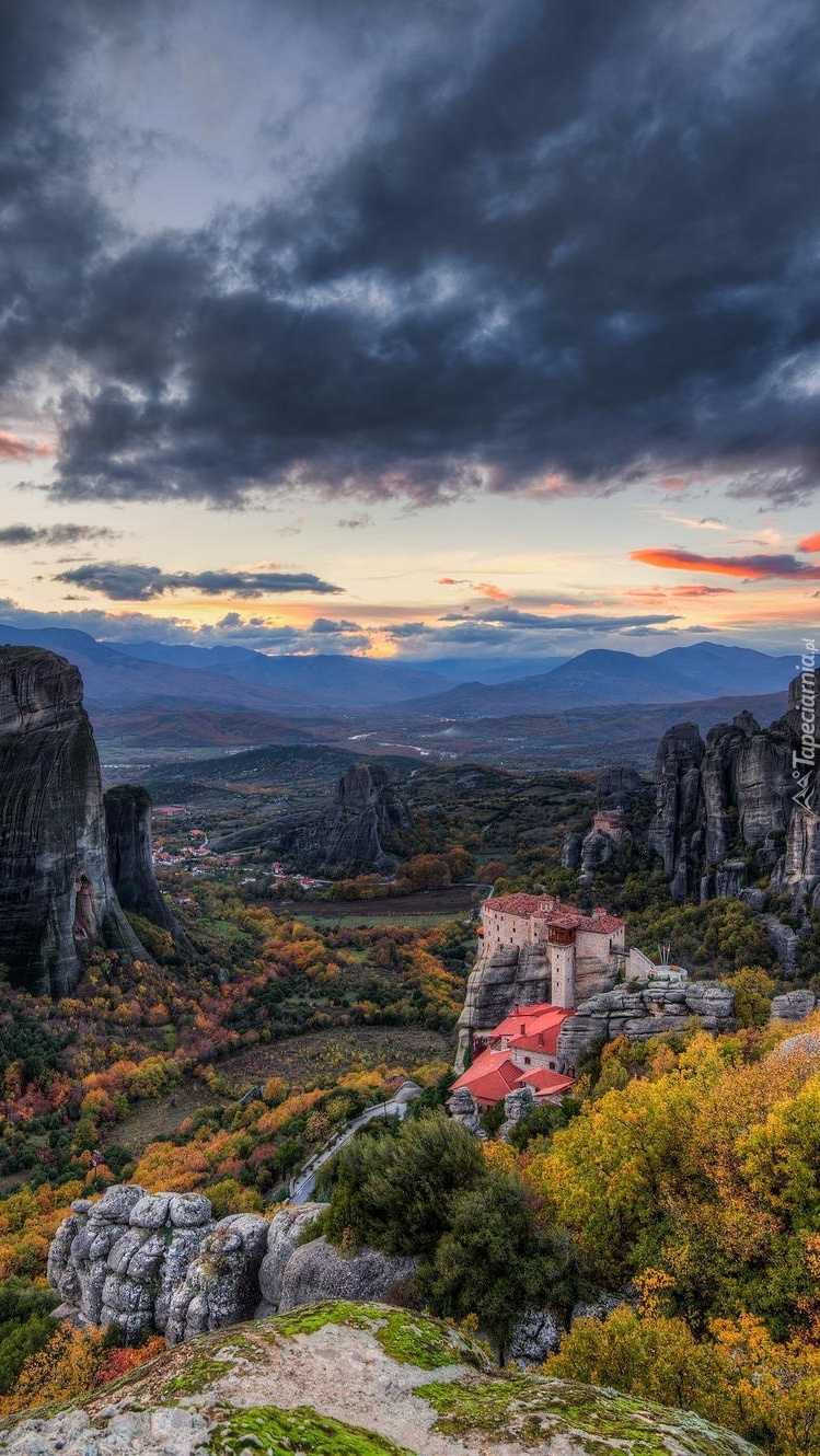 Edytor tapety: Ciemne chmury nad twierdzą w górach
