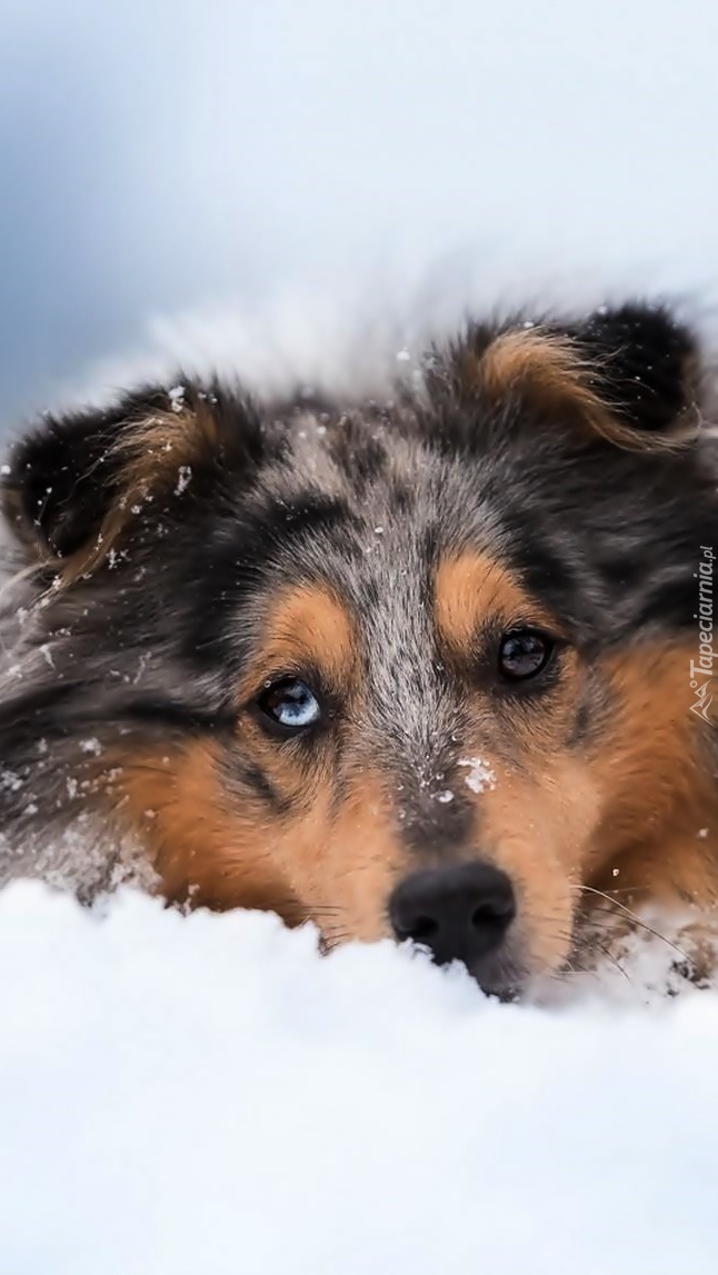 Edytor tapety: Owczarek szkocki na śniegu
