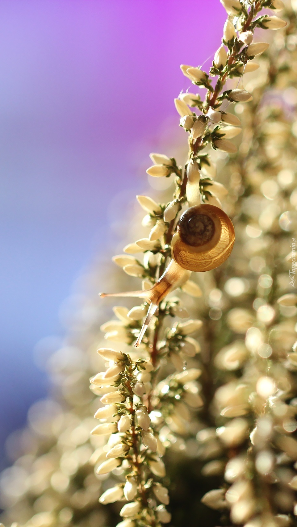 Edytor tapety: Ślimak na białym wrzosie