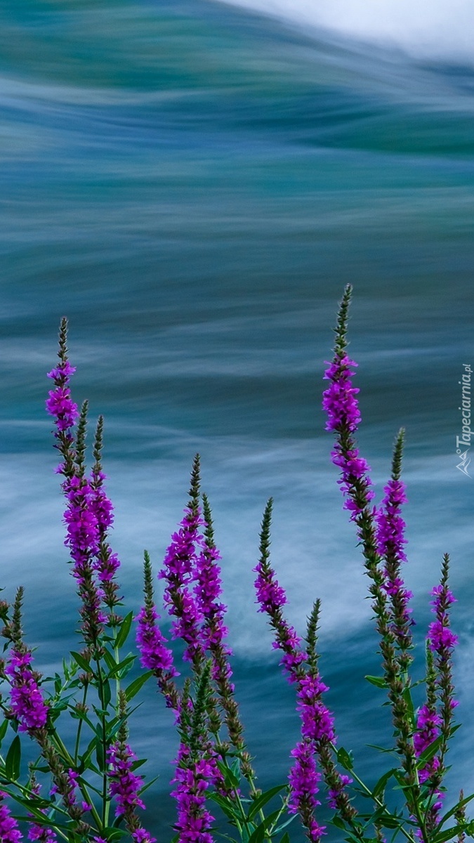 Edytor tapety: Kwitnące kwiaty nad rzeką