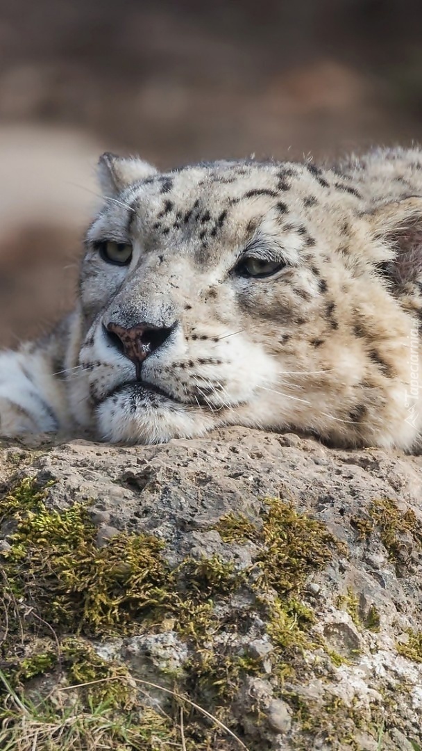 Edytor tapety: Zamyślony irbis na kamieniu